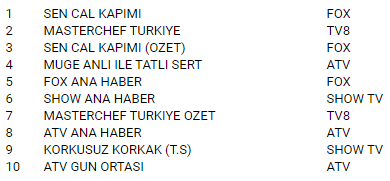 26 AĞUSTOS REYTİNG SONUÇLARI