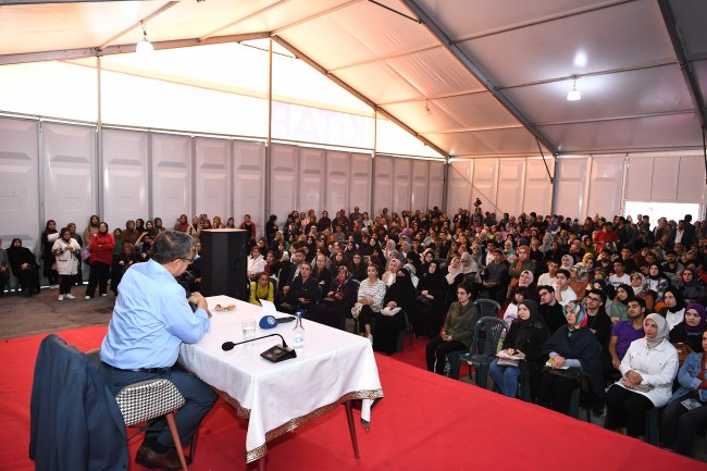 Kayseri Büyükşehir Belediyesi tarafından beşincisi gerçekleştirilen Kayseri Kitap Fuarı’nda ünlü şair ve yazarlar kitapseverlerle söyleşide bir araya gelmeye devam ediyor.