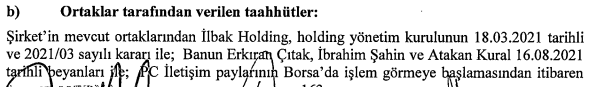 Şirket ve Ortaklar Tarafından Verilen Taahhütler