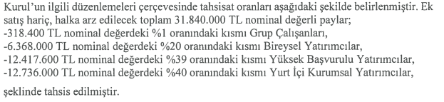 Halka Arz Edilecek Pay (nominal değerli): 31.840.000 + 6.368.000 Ek Satış