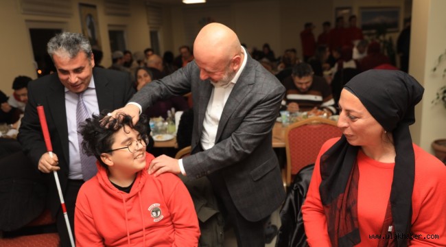 Altı Nokta Körler Derneği üyelerini, Kocasinan Belediyesi yemekhanesinde misafir eden Başkan Çolakbayrakdar, onlarla tek tek ilgilendi. Keyifli sohbetlere imza atan Başkan Çolakbayrakdar, küçük çocukları kucağına alıp, sevdi. Çocuklar ise Başkan Çolakbayrakdar’a sevgisini sarılarak yansıttı.