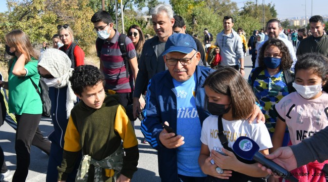 Talas Paraşüt İndirme Alanı’nda gerçekleşen etkinlikte konuşan Başkan Büyükkılıç, “Cıvıl cıvıl yavrularımızı fazla yormadan hep beraber yürüyeceğiz. Daha sonra değişik etkinliklerle günü tamamlamaya çalışacağız. Hepinize sağlıklı, hayırlı, huzurlu günler diliyorum” dedi.