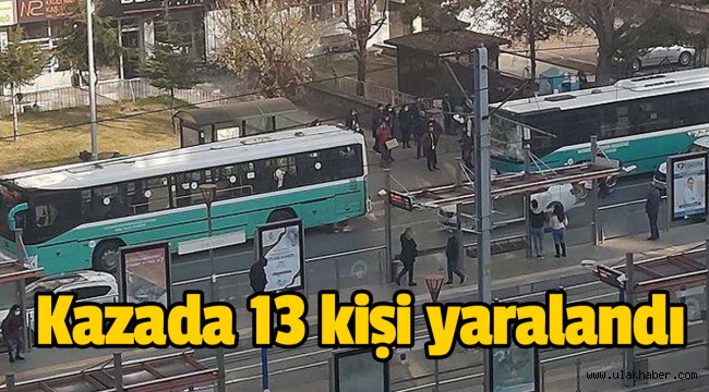 Kayseri’de aynı yönde seyir halinde olan iki halk otobüsü kazada yaptı. Sivas Bulvarı’nda meydana gelen kazada 13 kişi yaralandı.