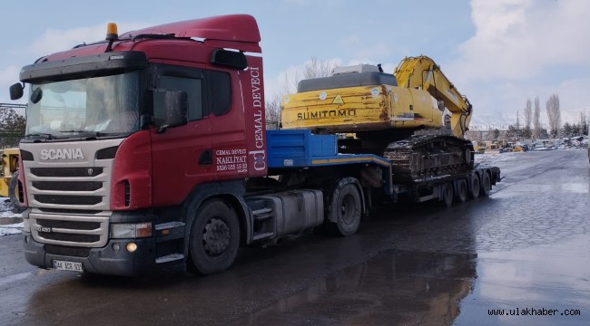 Kayseri Büyükşehir'den Adıyaman'a iş makineleri, Elbistan'a konteynır gönderildi