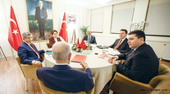 CHP Genel Başkanı Kemal Kılıçdaroğlu, İYİ Parti Genel Başkanı Meral Akşener, Saadet Partisi Genel Başkanı Temel Karamollaoğlu, DEVA Partisi Genel Başkanı Ali Babacan ve Gelecek Partisi Genel Başkanı Ahmet Davutoğlu, Demokrat Parti Genel Başkanı Gültekin Uysal’ın ev sahipliğinde üçüncü kez bir araya geldi.