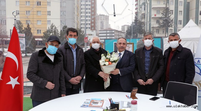 Başkan Yalçın’ın Şeffaf Oda’da ziyaretçileri arasında Talas’ın kırsal mahallelerinden muhtarlar da vardı. 5 kırsal mahallenin muhtarı Başkan Yalçın’a yaptıkları hizmetlerden dolayı çiçek takdim etti.